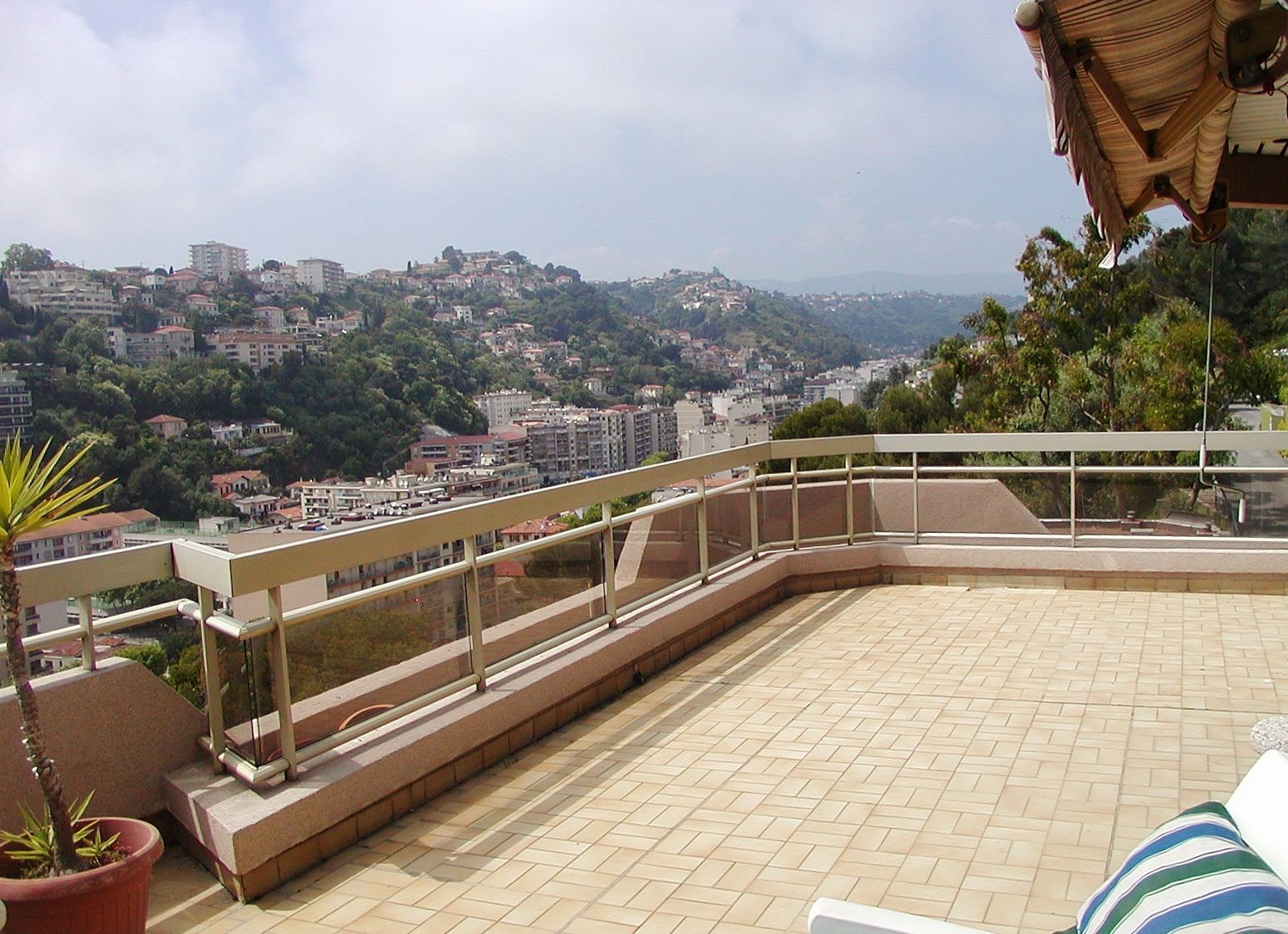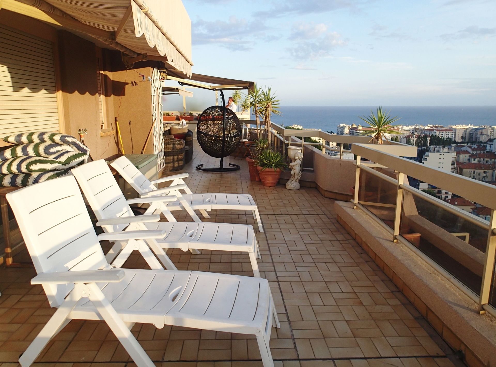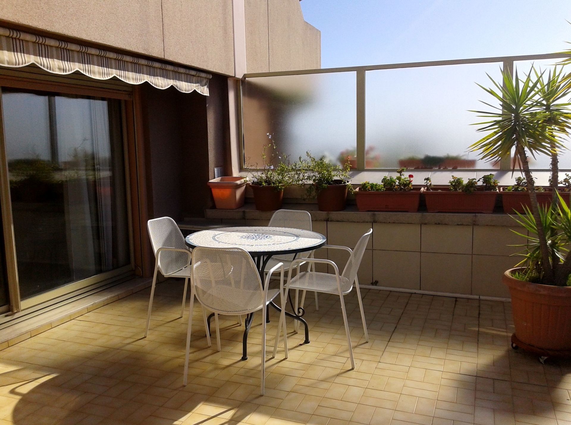 Chateau Miramar, Nice. Great apartment for 6 people with 2 bedrooms within walking distance to the beach in Nice, Cote d'Azur. The apartment, which is 100 m2, is located on the 5th floor of a big domain with park. The domain is safe and closed with electric gate. In the basement is a garage with space for two cars. From the large terrace of 120 m2 that surrounds most of the apartment, you have a beautiful view over Nice and also a wonderful sea view. The terrace has furniture, a dining area, a cozy sitting area and a barbecue, so you have every opportunity to enjoy the warm summer evenings.