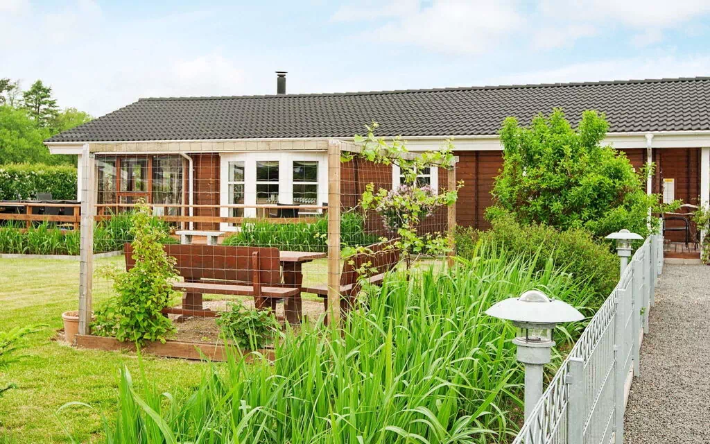 A well-arranged holiday cottage with a sauna and whirlpool in the spacious bathroom. The kitchen has an open connection to the living room and dining section, where you find comfortable furniture. Enjoy the lovely inflow of light in the conservatory, where you can sit and look out at the garden no matter what the weather is. Access a wooden terrace where you can sit back and relax while admiring the scenery.