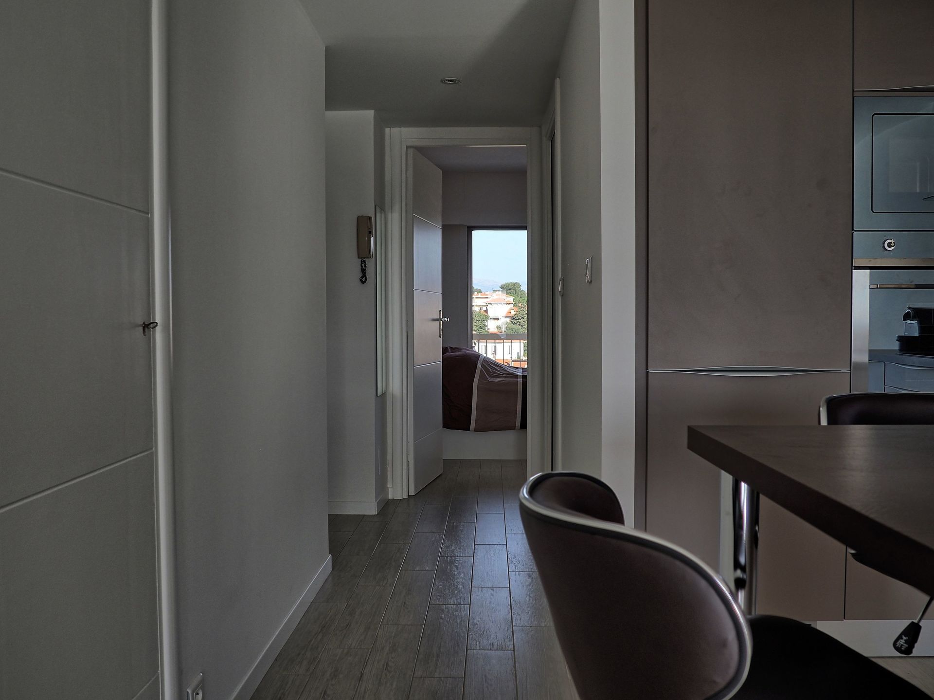 7th floor: Entrance hall, living room with kitchen, a double bedroom, a bathroom with shower, separate toilet and two terraces (8 and 6 m2). The kitchen is well equipped and the apartment has WIFI internet, washing machine.