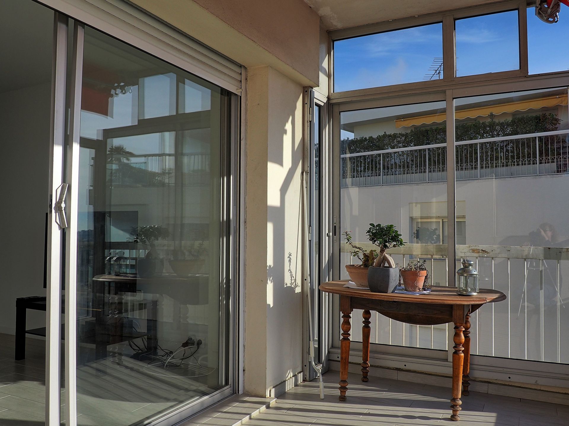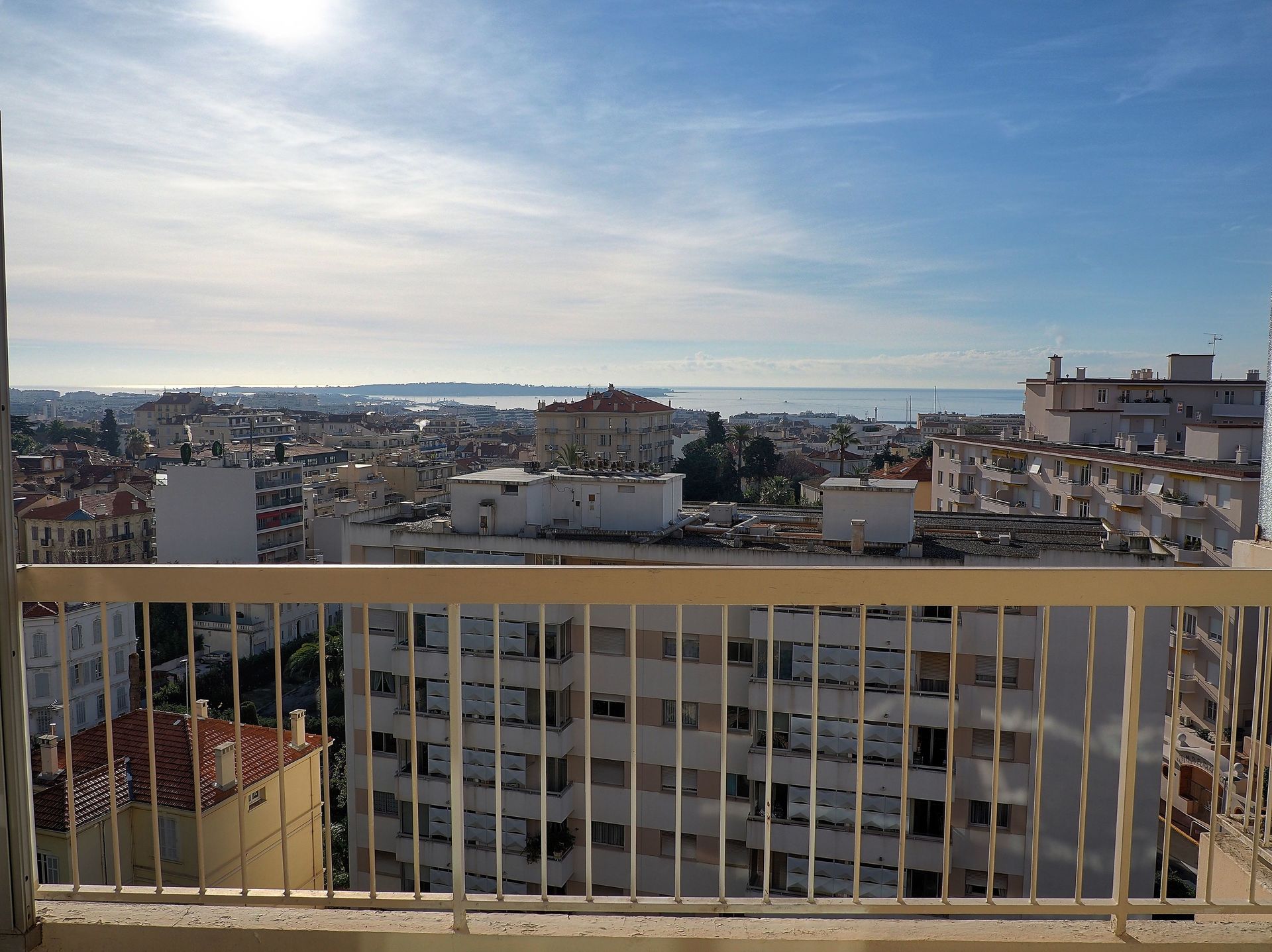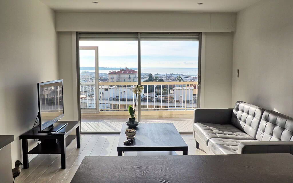 Lovely 1 bedroom apartment for 2 people with magnificent sea and mountain views. The apartment is renovated in modern style and with good taste. It's located on the 7th floor of a secure building with lift and only 10 minutes walk from the festival building and the lovely sandy beach. This apartment is suitable for both congress visit and vacation.