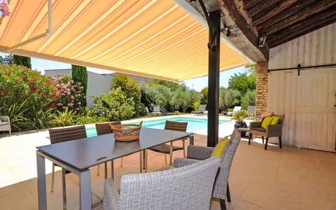 Villa "Les Angevines", bonita, reformada en 2025. En la localidad, a 800 m del centro de de Morières-les-Avignon, lugar tranquilo area residencial (villas). Privado: jardín, cuidado 1'170 m2 (vallado) con césped y árboles, piscina (4 x 8 m, 120 - 160 cm de profundidad, Disponible por temporada: 12.Abr. - 25.Oct.) con escalera interior y alarma. Terraza, muebles de jardín, barbacoa, caseta de barbacoa, mantenimiento de la piscina a través del propietario/jardinero. Aparcamiento (para 3 coches) en el mismo terreno. Tienda, tienda de comestibles 800 m, supermercado 3.1 km, restaurante, panadería 500 m, alquiler de bicicletas 3.9 km, a 5 minutos del centro andando, parada autobús "Salvador" 700 m, estación de tren "Avignon TGV" 15 km, playa de arena 102 km. Campo de golf (18 hoyos) 400 m, tenis 50 m, centro ecuestre 5.4 km, polideportivo 50 m, parque infantil 3.9 km. Atracciones en los alrededores: Avignon 10 km, L'Isle-sur-la-Sorgue 17 km, Gordes 33 km, Saint Rémy de Provence 23 km, Châteaurenard 14 km, Aéroport d'Avignon 5 km. Zona de senderismo Parc Régional des Alpilles 30 km, Parc Régional du Luberon 21 km, Mont Ventoux 31 km. A tener en cuenta: no adecuado para niños pequeños no adecuado para niños más pequeños de 6 años. El propietario no acepta grupos de adolescentes/jóvenes. Residencia con puertas de cierre eléctrico.