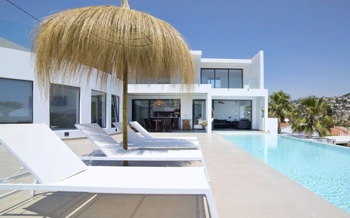 Benissa Costa: Villa "Casablanca", muy moderna, bonita de 2 plantas del año 2017. A 4.5 km del centro de Moraira, a 8.9 km del centro de Calpe, en el distrito Buenavista, lugar tranquilo, soleado area residencial (villas), a 1.7 km del mar, a 1.7 km de la playa. Privado: terreno 750 m2 (vallada), jardín en diferentes niveles, piscina rectangular (3 x 12 m, 30 - 150 cm de profundidad, 01.01.-31.12.). Ducha exterior, porche, caseta de barbacoa. En el inmueble: lavadora. Aparcamiento (para 2 coches). Tienda 3 km, tienda de comestibles 3 km, supermercado 3 km, restaurante 2 km, bar 3 km, bar al aire libre 1.6 km, playa de arena "Playa La Fustera" 2.9 km playa de gravilla "Cala Baladrar" 1.4 km, centro de buceo 5.2 km, cala para bañarse 1.4 km. Puerto deportivo 5.4 km, campo de golf 3.7 km, escuela de surf 5.4 km, escuela de vela 5.4 km. Atracciones en los alrededores: Aqualandia, Mundomar, Terra Mítica, Terra Natura, Benidorm Palace (Benidorm). Zona de senderismo Peñon de Ifach.