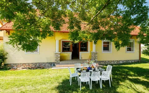 Una playa de hierba se encuentra a 500 metros de la propiedad; el lago en sí está a tan solo 400 metros. El alquiler de bicicletas está disponible a 2 kilómetros de la casa, y un carril bici comienza a tan solo 100 metros, facilitando la exploración ciclista de la zona. El ferry hacia Tihany sale a 10 kilómetros de la propiedad.