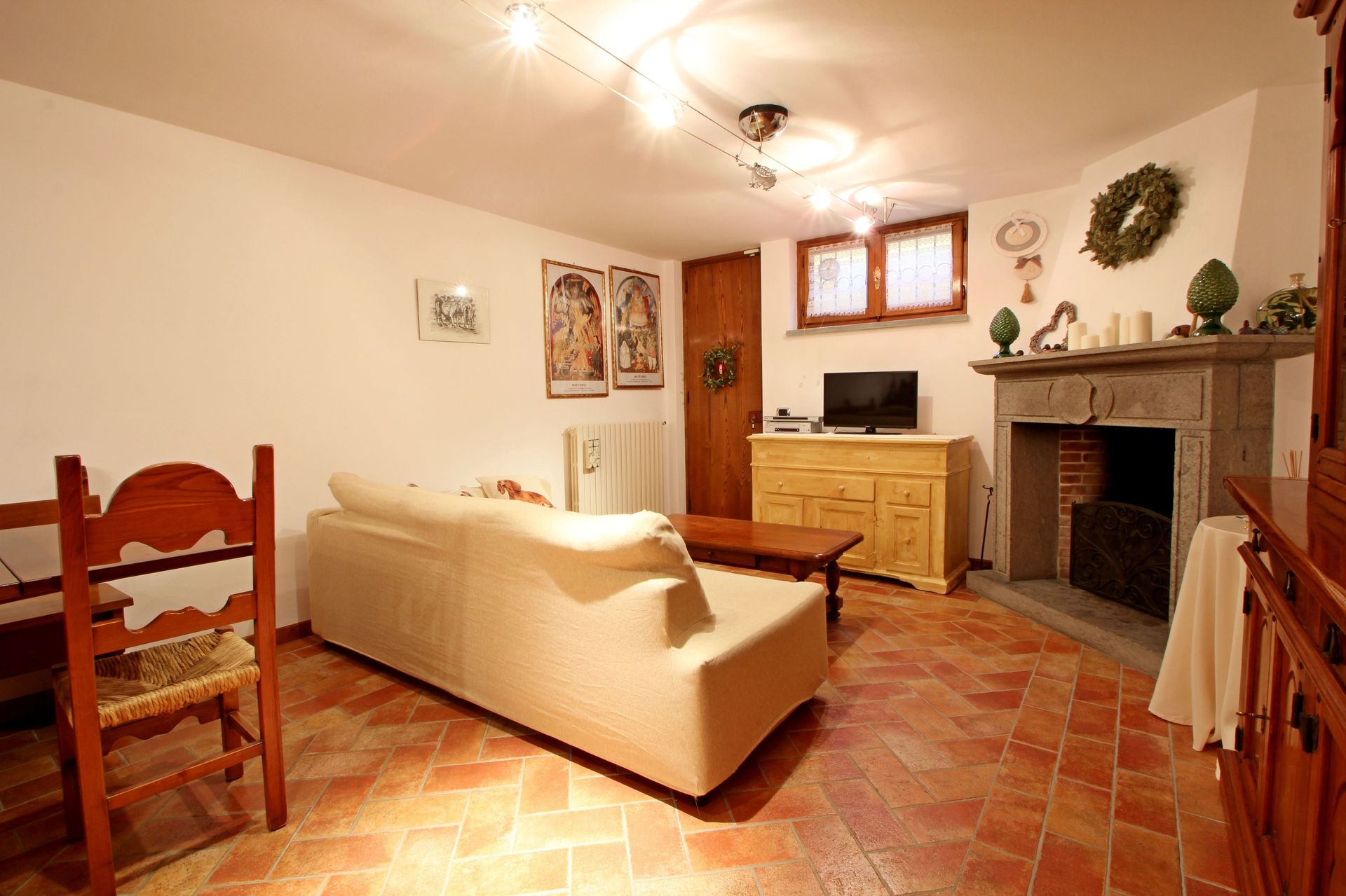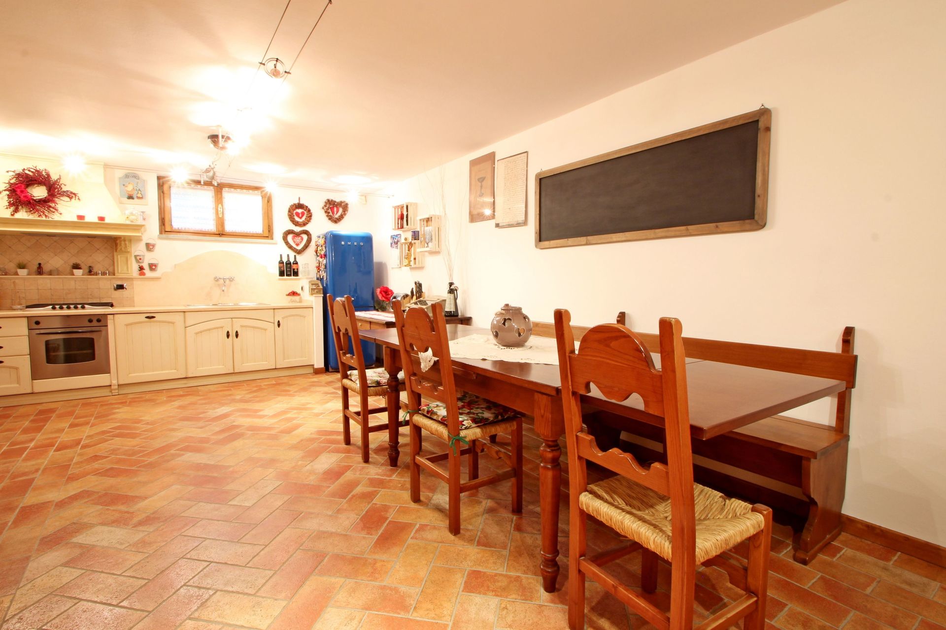 Cocina-salón: mesa de comedor (gente: 10), lavavajillas, frigorífico, congelador, cocina de gas, máquina de café italiana, chimenea, sofá cama de matrimonio (ancho: 1.6m, longitud: 1.8m), televisión.
