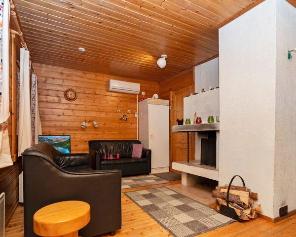 Ubicada en la serena naturaleza salvaje finlandesa de Kuusamo, esta acogedora casa de vacaciones de troncos ofrece un refugio auténtico y tranquilo para quienes desean sumergirse en la belleza natural del norte de Finlandia. Construida en 1989, la casa se distribuye en 2 plantas y está cuidadosamente organizada para proporcionar comodidad y una conexión genuina con el paisaje circundante. La planta baja alberga una sala de estar acogedora con chimenea, una cocina completamente equipada con horno de panadería tradicional, 2 dormitorios —uno con cama litera para 2 personas y otro con cama extensible de 120x200 cm— así como un cuarto de ducha con inodoro y una sauna eléctrica. La planta superior ofrece una sala de estar adicional con cama de 80x200 cm y un dormitorio más con 2 camas de 80x200 cm cada una, lo que proporciona una capacidad de alojamiento confortable para familias o grupos pequeños.