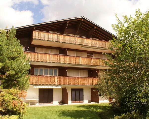 El apartamento dispone de un balcón orientado al sur, accesible directamente desde la sala de estar, que ofrece vistas panorámicas hacia el Rinderberg. La ubicación tranquila y soleada de la propiedad realza la experiencia al aire libre, rodeada de la belleza natural que caracteriza este entorno de montaña suizo.