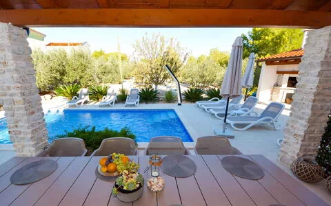 Villa "Malu Dream", de 2 plantas del año 2018. Lugar tranquilo, soleado, a 300 m del mar, a 300 m de la playa. Privado: terreno 600 m2 (vallada), plantas, piscina rectangular, climatizada (8 x 3 m, 26 m2, 140 cm de profundidad, Disponible por temporada: 01.Abr. - 01.Nov.) con escalera interior. Ducha exterior, barbacoa. En el inmueble: acceso a internet, lavadora. A disposición: bicicletas (2). Aparcamiento (para 2 coches) junto a la casa en el mismo terreno. Tienda 150 m, restaurante 300 m, playa de gravilla 400 m, playa rocosa 300 m, zona para bañarse 400 m, playa de cemento 300 m. Piscina climatizada (extra).