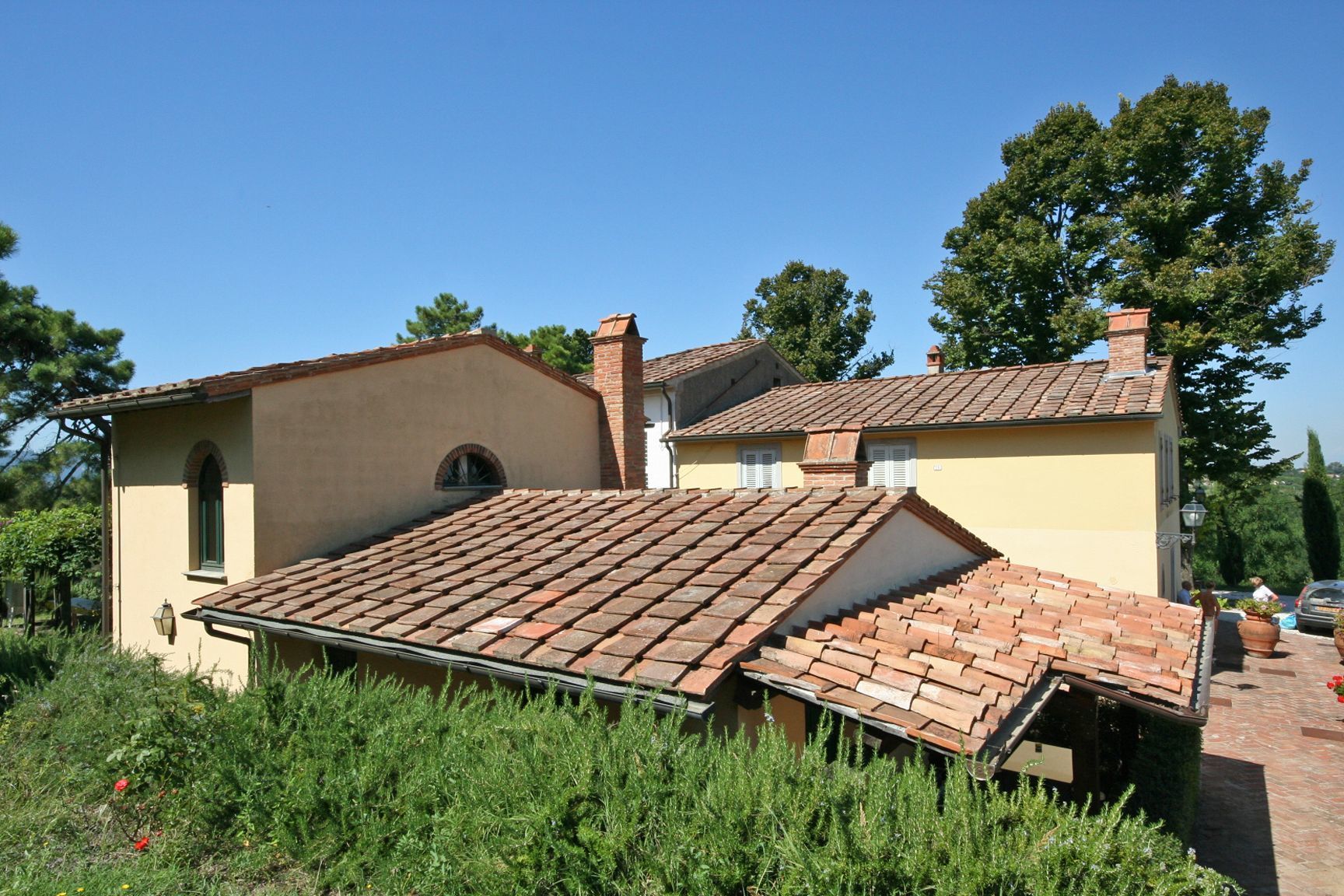 2° Piso: ( acceso por medio de 4 escalones ): Sala con chimenea y una enorme mesa de cena , cocina (horno ), cuarto matrimonial , cuarto con dos camas personales , baño con ducha . Los cuartos dotados de aire condicionado. Espacio externo privado y equipado.