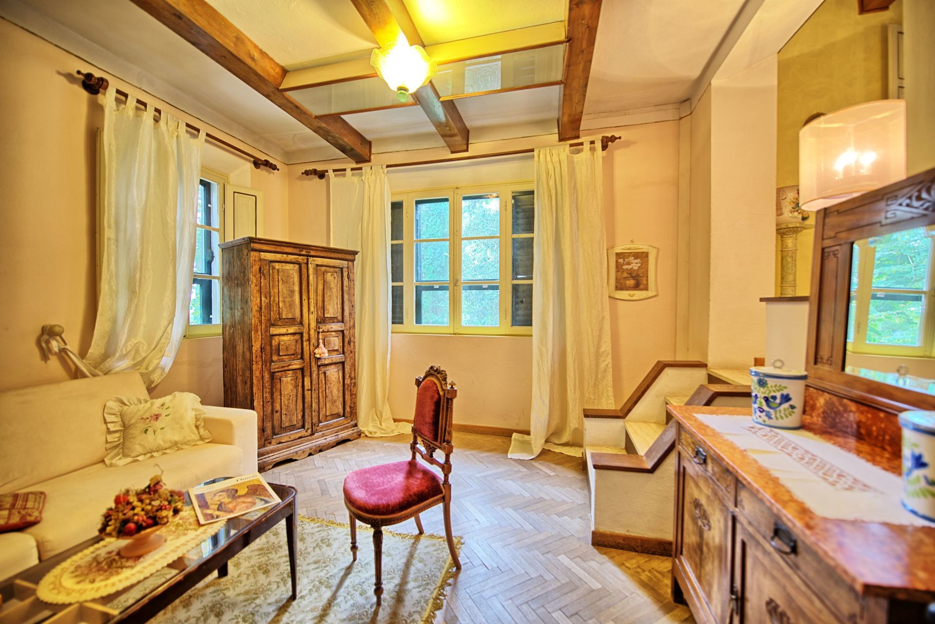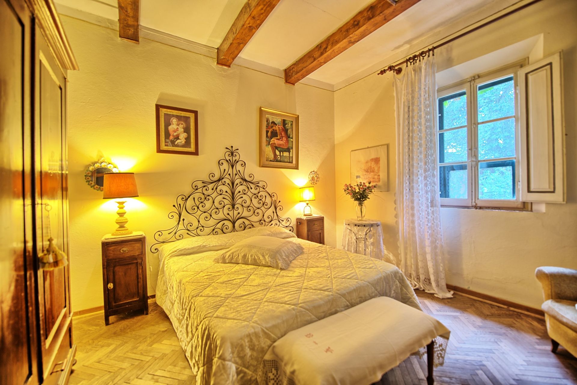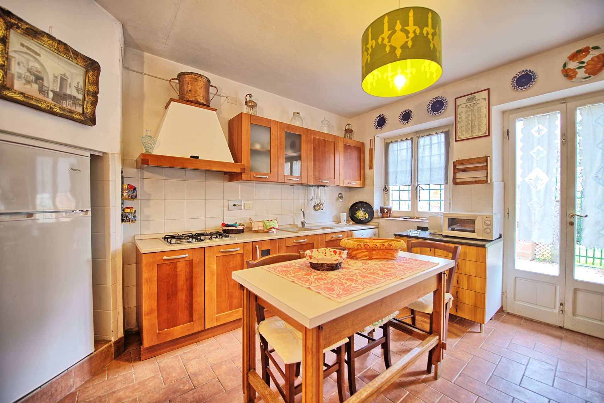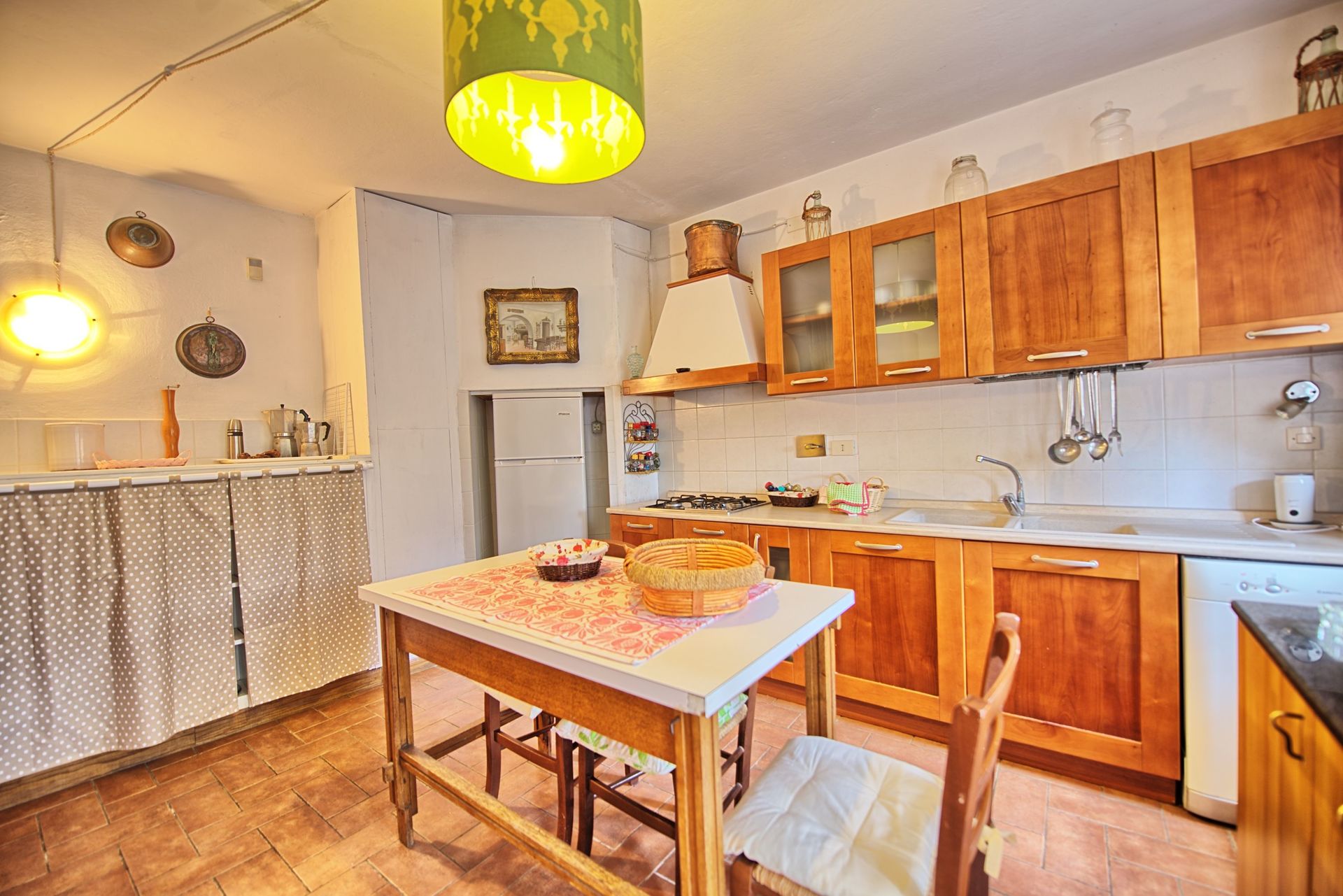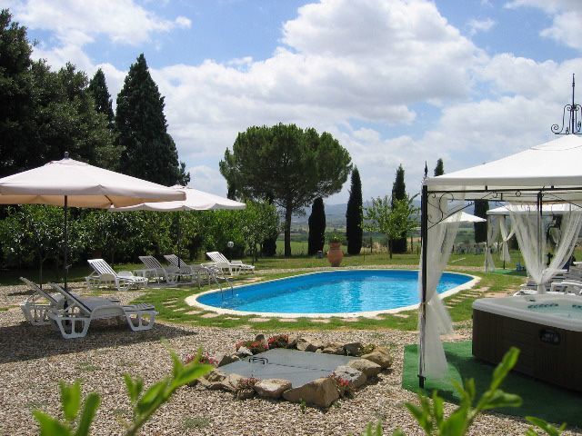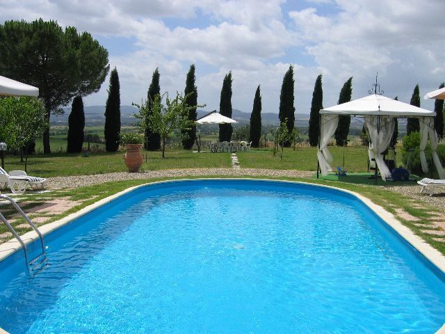 Un amplio jardín rodeado de cipreses y otros frondosos árboles, vistas a las colinas y a los exuberantes paisajes de la Toscana, una piscina privada, un tejado de terracota, una bonita cocina tradicional toscana, encantadoras habitaciones decoradas con detalle y esmero, techos altos con vigas vistas, una bonita zona cubierta para comer al aire libre, muchas habitaciones con salida directa a la terraza... todo esto y mucho más es lo que puede esperar de la maravillosa y típicamente toscana Villa La Fragola (que significa Villa de la Fresa) a sólo 500m del pueblo de Chianacce y a 19km (12 millas) de Montepulciano. Situada en una parte del mundo especialmente pintoresca y tranquila, ideal para aquellos que buscan alejarse de todo y relajarse en sus vacaciones, esta joya le permite obtener un verdadero sabor de la vida encantadora y pausada de la Toscana rural, mientras que también está idealmente situada a sólo 5 km de la autopista y permite un fácil acceso a muchos de los destinos y atracciones más famosos de la región. Aquellos que elijan Villa La Fragola, por lo tanto, obtendrán lo mejor de ambos mundos - la escapada de descanso en una campiña toscana de ensueño y un montón de oportunidades para ser un "turista serio" y visitar algunos lugares clave en su lista de cosas que hacer antes de morir. Además de Montepulciano, a sólo 19 km, también se encuentran otras ciudades cercanas como Cortona, a 20 km, Arezzo, a 45 km, Montalcino, a 52 km, y Perugia, a 62 km.