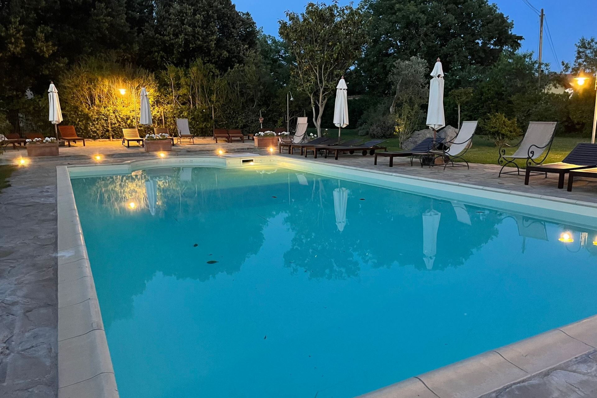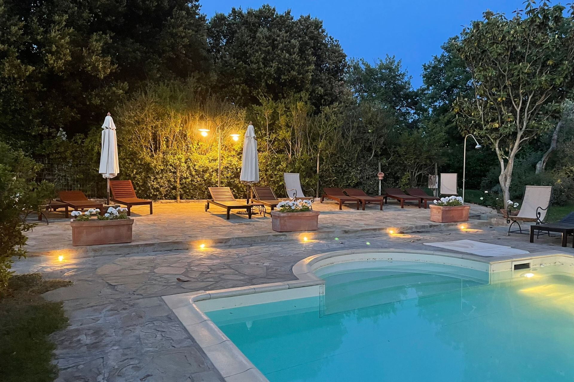 Adjacent to the farmhouse, where the owner's house is also located, you will find the swimming pool (size 6x12 m - depth 1,20 - 1,70 m - open from 01st May to 15 October), the laundry room, a bathroom with shower, and the park with children's playground.