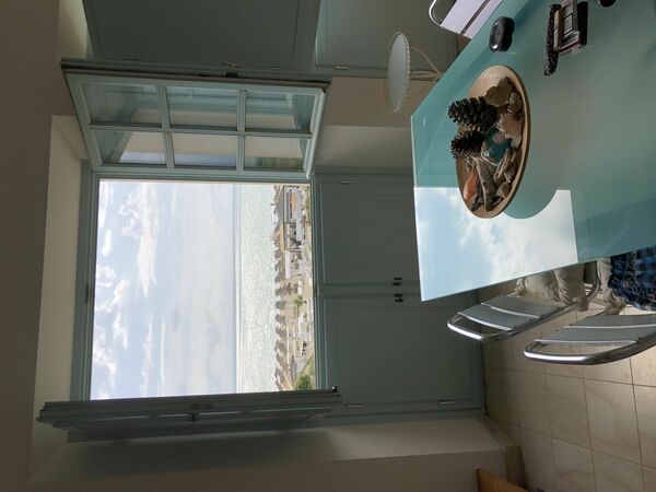 En la planta baja, la sala de estar y comedor constituyen el corazón del apartamento, ofreciendo un sofá cama doble y acceso directo a una terraza que enmarca una magnífica vista al mar. La cocina abierta se integra perfectamente en este nivel y viene completamente equipada con horno, lavavajillas, 4 placas de inducción y congelador, con una salida adicional hacia la terraza. El baño de esta planta está equipado con ducha, bidé e inodoro, y dispone de aire acondicionado para mayor comodidad durante todo el año.