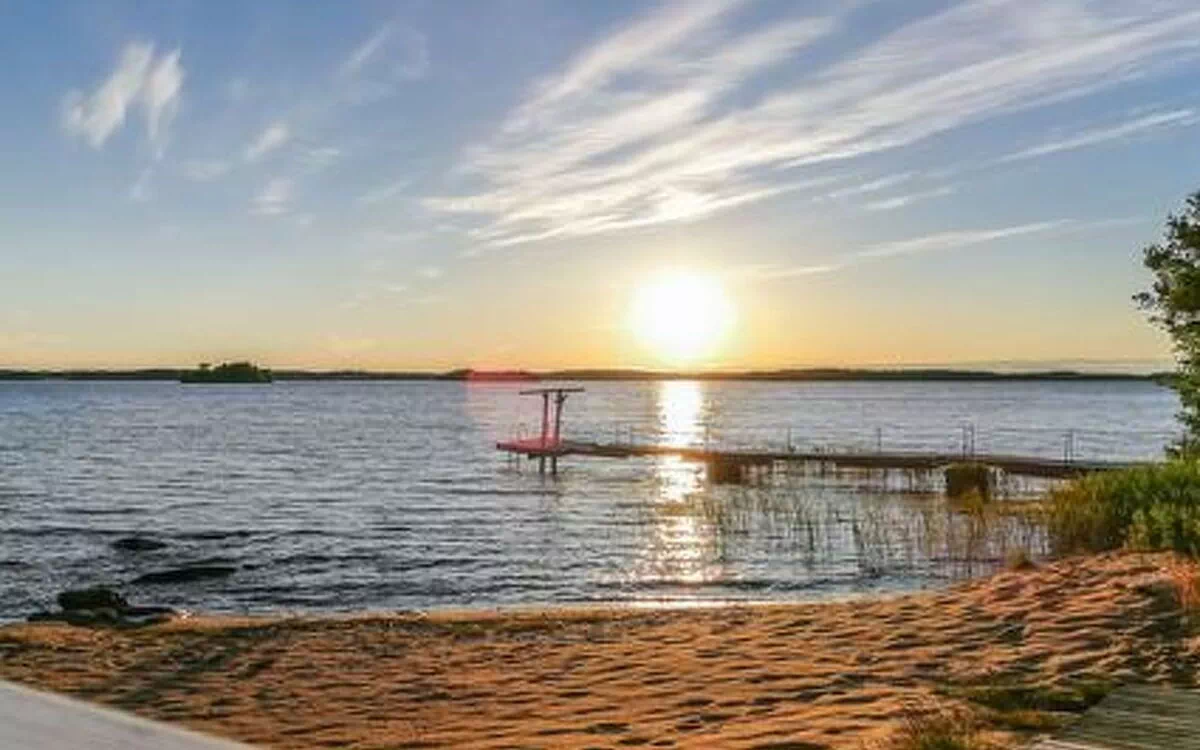 La casa de vacaciones se sitúa a tan solo 30 metros de las orillas del lago Luodonjärvi, ofreciendo acceso directo al agua, que cuenta con un fondo arenoso poco profundo ideal para nadar de forma segura y relajada. El área de playa se comparte con la casa de vacaciones vecina 13665, creando un ambiente amistoso junto al lago. Cada casa dispone de su propia barca de remos dedicada, permitiendo explorar las tranquilas aguas del lago y disfrutar del sereno paisaje finlandés desde el agua. El balcón accesible desde la planta superior proporciona un espacio exterior elevado donde relajarse y absorber la atmósfera pacífica de la naturaleza circundante.