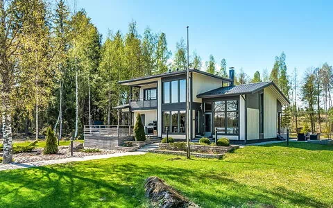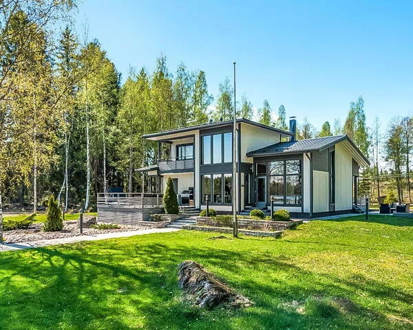 Ubicada en las orillas del lago Karhijärvi en Lavia, Finlandia, esta villa de madera moderna ofrece un refugio lacustre refinado para familias y grupos. Construida en 2009, la propiedad combina diseño contemporáneo con entornos naturales, destacando una espaciosa cocina abierta y sala de estar que definen el tono de la estancia. La planta baja alberga un dormitorio con 2 camas, una sauna equipada con estufa de leña, un cuarto de baño con 1 ducha y un aseo separado. La primera planta cuenta con un segundo dormitorio con 2 camas, una zona de estar con sofá de dos plazas y un balcón privado con vistas al paisaje circundante. Durante la temporada estival, del 1 de junio al 30 de agosto, una casita de jardín separada de 40 metros cuadrados está disponible en la propiedad, elevando la capacidad total a 10 personas; fuera de este período, la ocupación máxima es de 6 personas.