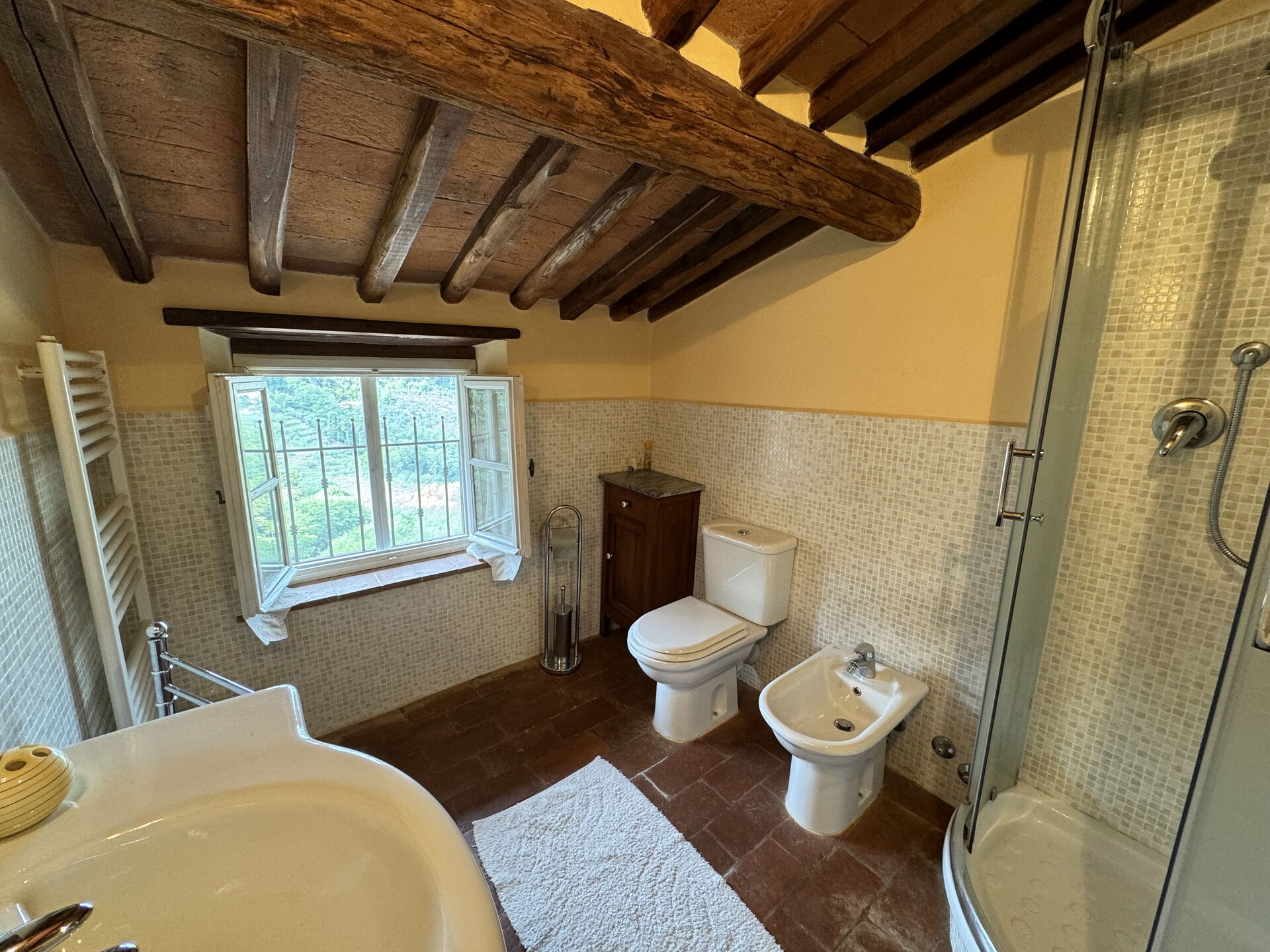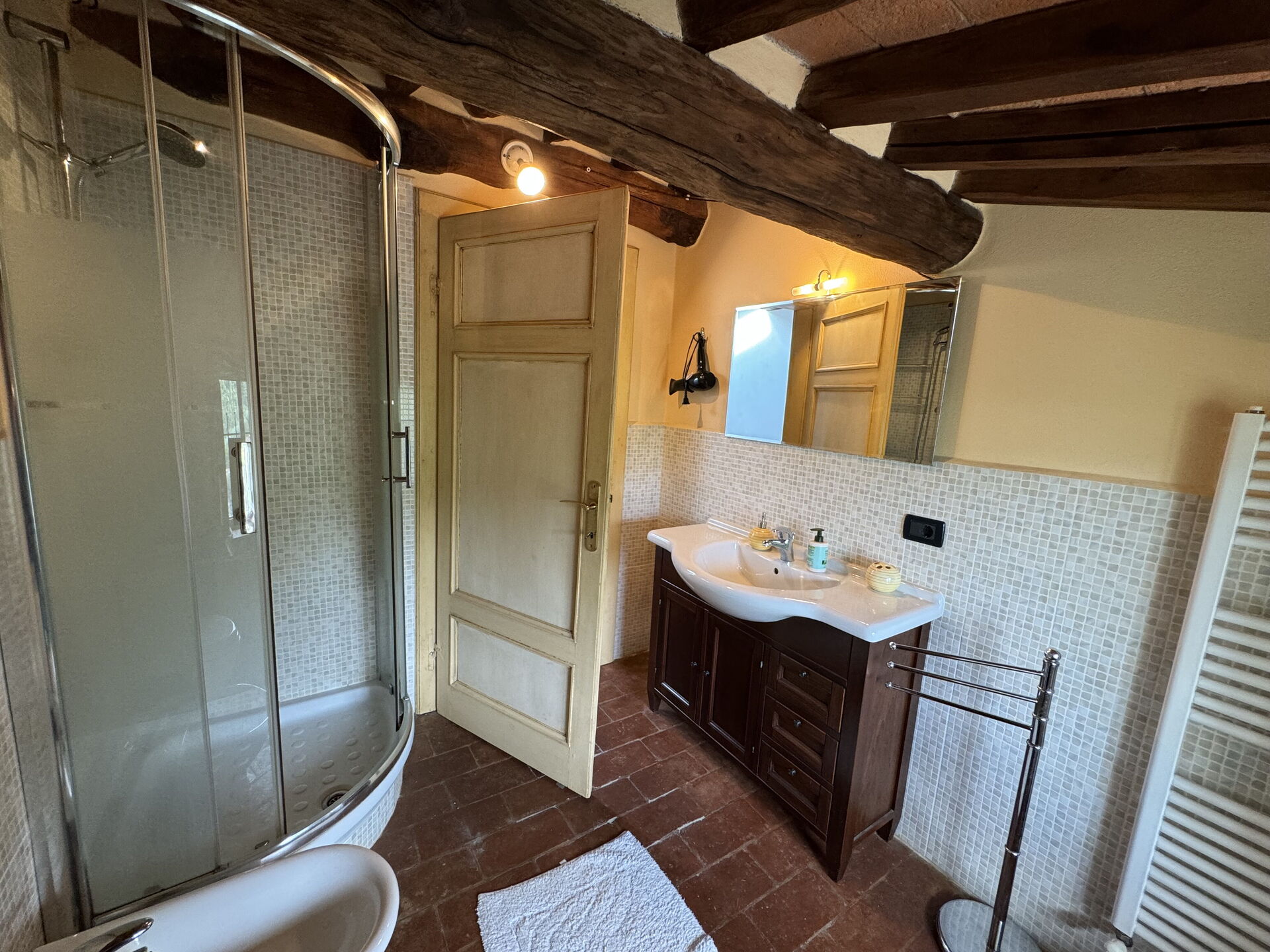 Después de llegar será acogido por el propietario u ama de llaves y encontrará una estupenda propiedad limpia y acogedora with views of las colinas perfecta para unas vacaciones tranquilas en Toscana. Para su goce encontrará una piscina privada donde puede descansar disfutando de un buen refresco después de un día pasado haciendo compras. Hay una cocina incluso máquina de café, microondas, tostador, estufa y nevera, así como , muchas vajillas y cubiertos para hasta seis personas. Si prefiere comer afuera 'al fresco', hay la terraza, un espacio bien equipado donde puede disfrutar el buen clima comiendo afuera.