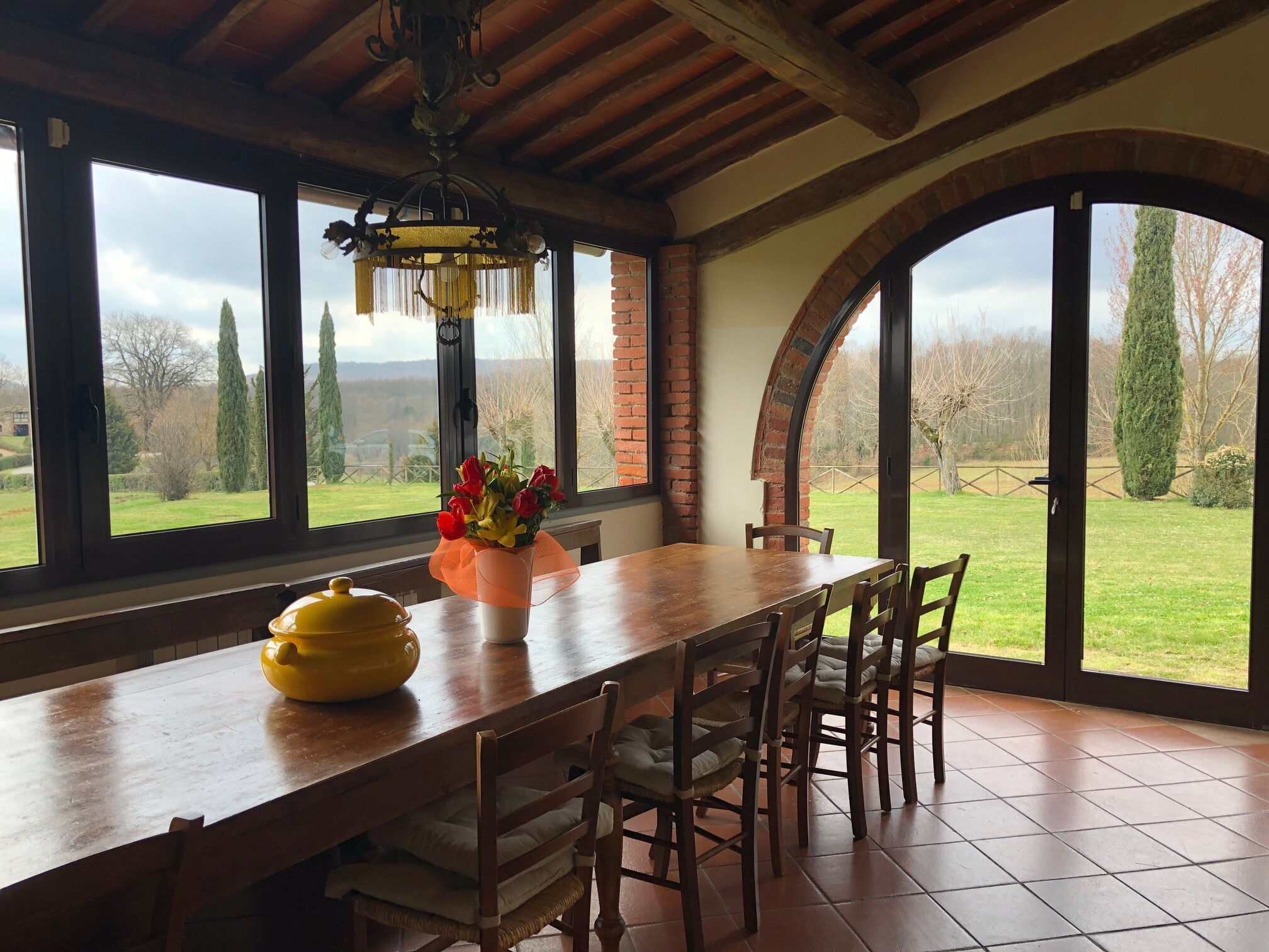 Después de llegar será bienvenido por el propietario u ama de llaves y encontrará una hermosa propiedad limpia y acogedora with views of las colinas perfecta para unas vacaciones relajantes en Toscana. Después un día pasado haciendo compras, disfrute de una buena copa de vino con sus amigos y su familia al lado de la piscina - lo mejor para relajarse después de un largo día. Para su placer, afuera hay porche y barbacoa. Si le gusta cocinar para su familia y amigos hay una cocina bien equipada incluso microondas, tostador y nevera, así como , muchas vajillas y cubiertos para hasta 24 personas. Si prefiere comer afuera 'al fresco', hay la veranda, un espacio bien equipado donde puede disfrutar el buen clima comiendo afuera.
