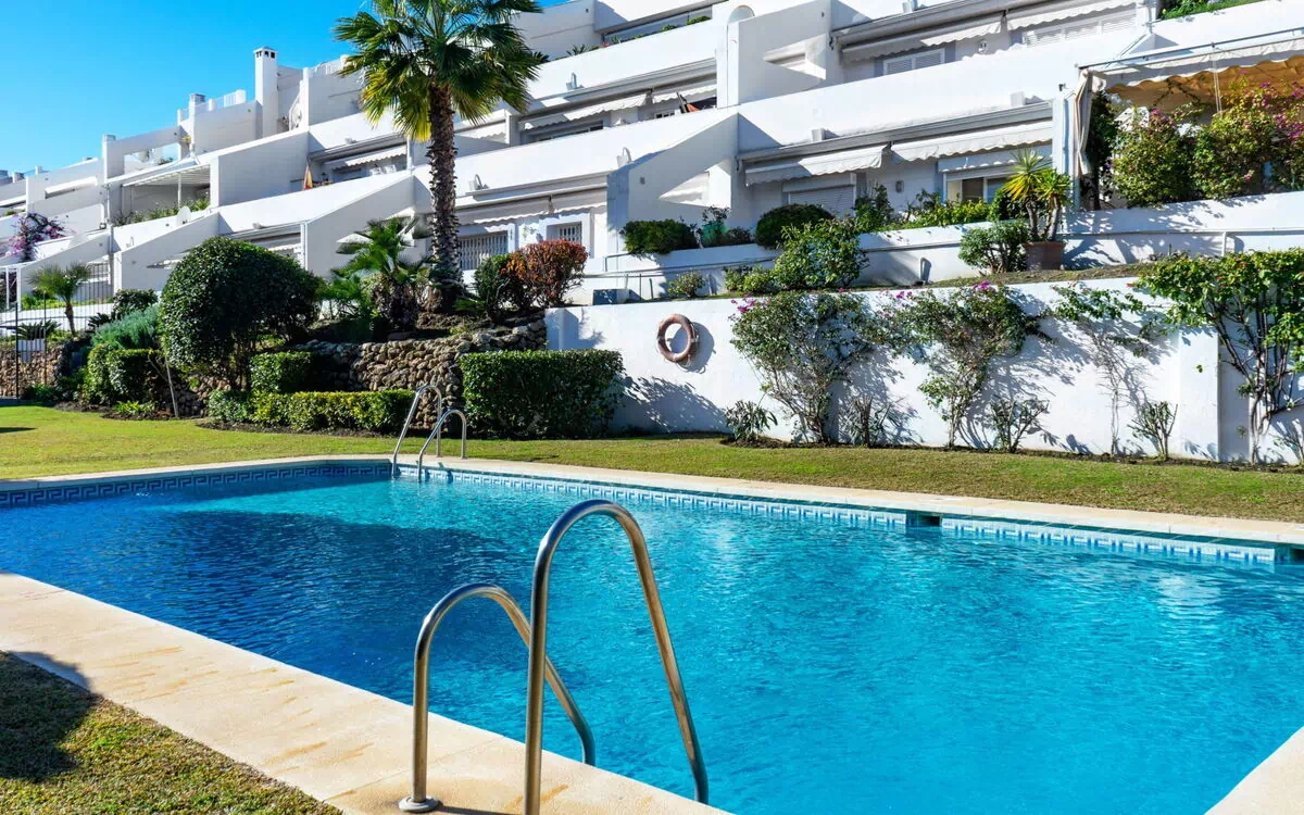 Casa de apartamentos "Mirador". A 15 km del centro de Marbella, en las afueras de la localidad, a 7 km del centro de Puerto Banús, a 6 km del mar, en campo de golf, orientación este. Comunitario: jardín con césped, piscina (80 - 210 cm de profundidad, Disponible por temporada: 01.Jun. - 30.Sep.). En el inmueble: calefacción central, aire acondicionado, lavadora. Aparcamiento. Supermercado 4 km, restaurante 5 km, parada autobús "El Salto" 2.1 km, playa de arena 6 km. Campo de golf (18 hoyos) 1 km. A tener en cuenta: coche recomendable. Vecindario muy sensible a ruidos. Se ruega respetar la tranquilidad y normas de buen comportamiento.
