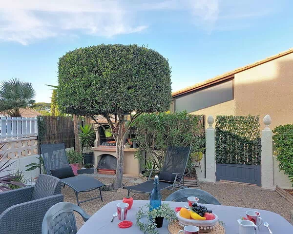 Esta casa de vacaciones adosada de 35 m² distribuida en 2 plantas aloja un máximo de 4 huéspedes. La planta baja comprende una zona de estar y comedor equipada con televisor de pantalla plana, que se abre a una cocina americana totalmente equipada con horno pequeño, lavavajillas, 2 placas de cocción de vitrocerámica, congelador y cafetera eléctrica. El dormitorio de esta planta está amueblado con una cama francesa de 140 cm de ancho. El baño con ducha completa la planta baja. La primera planta alberga una galería con una alcoba de dormir que contiene 1 litera de 90 cm. Las áreas de dormir, incluidas la galería y la alcoba, se encuentran en espacios abiertos sin paredes de separación. La propiedad dispone de una terraza privada de 20 m² amueblada con mobiliario de exterior y barbacoa.