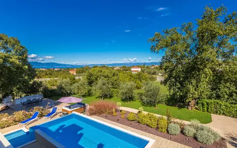 Villa "Roko", bonita de 3 plantas. En el aldea Ljutići, a 2.5 km del centro de Malinska, lugar tranquilo, soleado, a 2.5 km del mar, a 2.5 km de la playa, en el campo. Privado: terreno 1'200 m2, piscina rectangular (10 x 3 m, 150 cm de profundidad, Disponible por temporada: 01.May. - 31.Oct.). Piscina para niños, ducha exterior, piscina de hidromasaje, terraza (100 m2). En el inmueble: acceso a internet, sauna, habitación relax, billar, lavadora, secadora. Aparcamiento (para 4 coches) junto a la casa en el mismo terreno. Tienda 2 km, supermercado 4 km, restaurante 2 km, parada autobús 1.3 km, playa de gravilla 2.5 km, zona para bañarse 2.5 km, playa de cemento 2.5 km. Grupos de jóvenes sólo bajo petición. Los grupos de jóvenes deberán dejar el doble de fianza. .