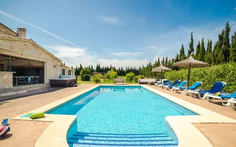 Alcúdia a 5 km de Alcúdia-Pollença: Villa "Vertaient", muy amplia, bonita, confortable de 2 plantas, reformada. En las afueras de la localidad, a 4 km del centro de Alcúdia, lugar tranquilo, soleado, a 3 km de un bosque, a 7 km del mar, a 7 km de la playa, en el campo. Privado: terreno 14'250 m2 (vallada), jardín grande con césped y plantas, piscina rectangular (8 x 4 m, Disponible por temporada: 01.Ene. - 31.Dic.). Ducha/WC en zona de piscina, ducha exterior, piscina de hidromasaje, tenis de mesa, terraza-jardín, cenador, porche, barbacoa. En el inmueble: acceso a internet, Wifi, sala para guardar bicicleta, calefacción central, aire acondicionado, alarma, lavadora. Aparcamiento junto a la casa en el mismo terreno. Tienda 5 km, tienda de comestibles 5 km, supermercado 5 km, restaurante 5 km, parada autobús 5 km, playa de arena 6.5 km, playa de piedras 7 km. Puerto deportivo 6.5 km, campo de golf (18 hoyos) 7 km, centro ecuestre 4 km, parque infantil 4 km. A tener en cuenta: adecuado para familias, adecuado para la tercera edad. Vivienda adecuada para 8 adultos grupos de jóvenes sólo bajo petición. Carga y descarga de equipaje posible en la casa de vacaciones. Animales en los alrededores. Aeropuerto 55 km de la casa.