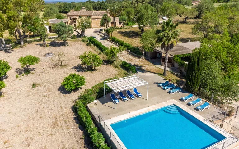 Camí Can Amagat a 5 km de Felanitx: Finca "Can Amagat", moderna, rústica, rodeada de campos. A 4 km del centro de Felanitx, a 16 km del centro de Campos, a 54 km del centro de Palma, lugar tranquilo, soleado, a 2 km de un bosque, a 17 km del mar, a 16 km de la playa, en el campo. Privado: terreno 80'000 m2, jardín grande con plantas y árboles, piscina rectangular (9 x 7 m, 200 cm de profundidad, Disponible por temporada: 01.Ene. - 31.Dic.). Ducha exterior, casita de piscina con nevera, terraza-jardín, cenador, porche, muebles de jardín, barbacoa, mantenimiento de la piscina a través del propietario/jardinero. En el inmueble: sala para guardar bicicleta. Acceso durante 700 m hasta el terreno (camino de tierra). Aparcamiento junto a la casa en el mismo terreno. Tienda 4 km, tienda de comestibles 5 km, supermercado 6 km, centro comercial 12 km, restaurante 8 km, bar 5 km, panadería 5 km, café 5 km, parada autobús "Felanitx" 6 km, estación de tren "Manacor" 12 km, playa de arena "Cala Murada" 19 km, playa de piedras "Cala Varques" 11 km. Puerto deportivo 15 km, puerto para yates 15 km, campo de golf (18 hoyos) 3 km, escuela de surf 14 km, escuela de vela 14 km, tenis 12 km, centro ecuestre 18 km, polideportivo 15 km, rutas de senderismo desde la casa 10 km, caminos para bicicletas 12 km. Atracciones en los alrededores: Museo Junipero Serra 7 km, Ermita Bonany 10 km, Porto Cristo 6 km, Safari Park Sa Coma 8 km, Castell de Capdepera 15 km. Zona de senderismo Finca Son Real 18 km, Parque natural Llevant 12 km. A tener en cuenta: coche recomendable. El propietario no acepta grupos de adolescentes/jóvenes. Animales en los alrededores. Aeropuerto 48 km de la casa.