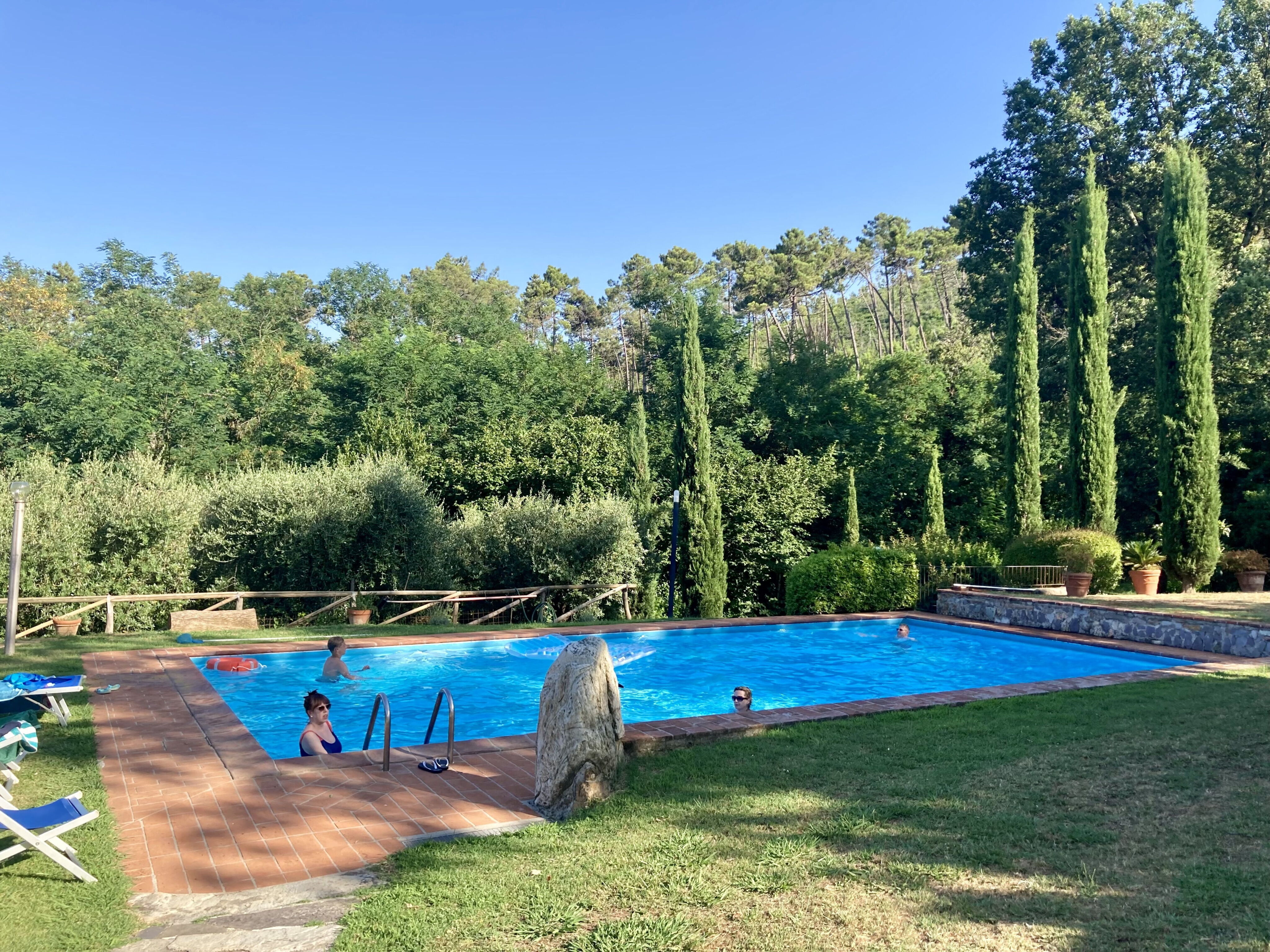 We had a brilliant stay in August 2025, with our three young kids (8, 6 and 4 years old). The house is beautiful, quiet, clean, well equipped and very nicely located 12 minute drive outside of Lucca. The pool is 1.2 metres deep at its shallowest - and is just lovely. There is air conditioning in the bedrooms but the rest of the house was a nice temperature despite it being 32-35 degrees during the day when we stayed.