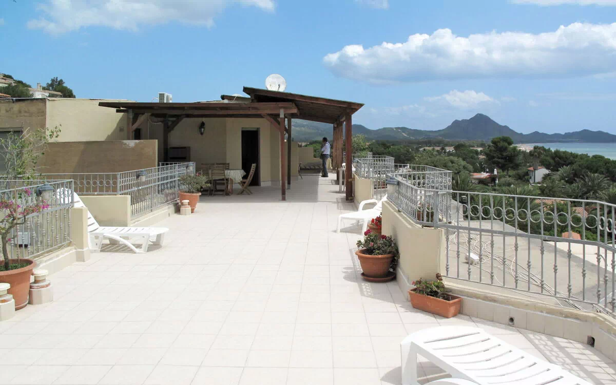 "Attico (REI222)", ático de 4 habitaciones 75 m2 en el 3° piso. Con mobiliario sencillo y rústico: salón-dormitorio con 1 sofá-cama doble, mesa de comedor, TV satélite, calefacción eléctrica y aire acondicionado. Salida a la terraza. 1 dorm. con 1 cama doble y ducha/WC. 1 dorm. con 1 cama doble. 1 dorm. con 1 x 2 literas. Pequeña cocina (lavavajillas, Estufa de gas, 4 fuegos). Ducha/WC. Calefacción no en todas las habitaciones. Terraza grande 70 m2 parcialmente cubierta. Muebles de terraza, barbacoa, tumbonas (2). Vista espléndida al mar y Costa Rei. El alojamiento dispone de: lavadora, cuna hasta 2 años (extra). Internet (Wifi, extra).