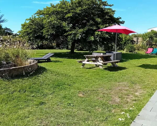 La casa de vacaciones "Les Cordylines" se encuentra en el tranquilo barrio residencial de Anneville-sur-Mer, Francia. La propiedad ocupa un terreno privado vallado de 1.300 m2 rodeado de un prado exuberante que crea un entorno sereno y pintoresco. La casa ofrece el equilibrio perfecto entre el aislamiento rural y la comodidad moderna, con amplios espacios verdes que garantizan privacidad total.