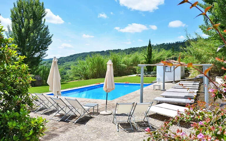 Casa de campo "Casale Cimacolle". A 15 km del centro de Orvieto, a 11 km del centro de Civita di Bagnoregio, a 36 km del centro de Todi, a 19 km de un lago, en el campo. Comunitario: terreno 120 ha, piscina (13 x 6 m, Disponible por temporada: 16.May.-26.Sep.). Privado: terreno en estado natural 1'000 m2 con césped y árboles, terreno con hierba. Acceso brusco, estrecho durante 600 m (camino de tierra). Aparcamiento en el mismo terreno. Tienda 3 km.