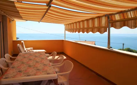 Apartamento de 4 estancias 120 m2 en 2 plantas en el 2° piso. Con mobiliario funcional y confortable: salón-comedor grande con chimenea (sólo con función decorativa), mesa de comedor y TV satélite. Salida a la terraza. 1 dorm. doble con aire acondicionado. Salida a la terraza. 1 dorm. con 1 cama y 1 cama-nido. Salida al balcón. Cocina (horno, lavavajillas, Estufa de gas, 6 fuegos, hervidor de agua eléctrico, congelador) con mesa de comedor. Salida al balcón. Ducha/bidet/WC. Planta superior: (escalera de caracol) 1 dorm., abierto con 1 cama y 1 x 1 literas, ducha/WC y aire acondicionado. Salida a la terraza. Aire acondicionado, aire caliente. Balcón, terraza 30 m2, terraza 100 m2. Muebles de terraza, tumbonas (4). Vista espléndida al mar y al pueblo. El alojamiento dispone de: lavadora, cuna, secador de pelo. Internet (Wifi, gratis). A tener en cuenta: apartamento para no fumadores. IT010037C22M5MQMD2