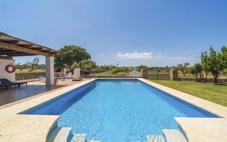 Son Ulari Gran es una casa de vacaciones de 2 plantas ubicada en el corazón de la campiña mallorquina en Santa Margalida, España. La propiedad se sitúa dentro de una finca privada de generosas dimensiones, de 3.000 m², completamente vallada y mantenida en su estado natural, con un césped bien cuidado y árboles maduros que crean una atmósfera serena y privada. La casa ofrece una gran piscina privada de 12 x 6 metros disponible durante todo el año.