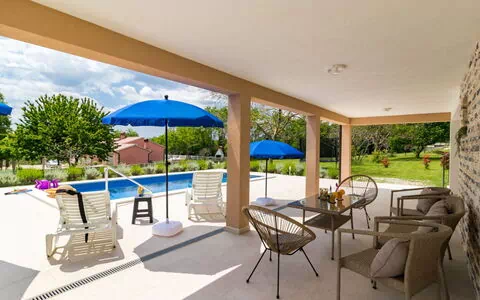 Marina es una casa de 2 plantas bien equipada construida en 2018. La conexión Wi-Fi está disponible en toda la propiedad; hay aparcamiento en el lugar para hasta 3 vehículos, accesible a través de un camino sin asfaltar de 30 metros que conduce directamente a la casa. Una lavadora está disponible en el interior de la casa para estancias prolongadas. El acceso motorizado a la propiedad se realiza a través del camino sin asfaltar de 30 metros. La piscina está disponible del 1 de mayo al 1 de octubre y se mantiene regularmente para garantizar condiciones óptimas. Los grupos de adolescentes se aceptan solo bajo petición; los huéspedes deben contactar con la propiedad con antelación para confirmar su elegibilidad.