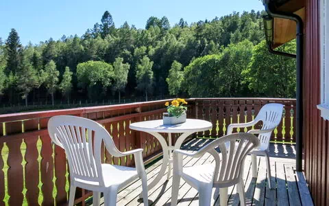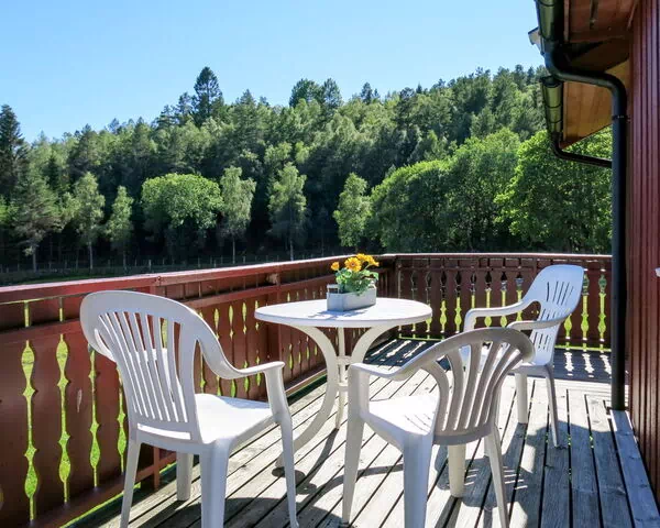 La villa "Espetveit" es una casa de madera de 70 m² distribuida en una planta única, con capacidad para 5 huéspedes máximo, 3 dormitorios y 1 baño. La vivienda cuenta con una zona de estar y comedor amueblada con mobiliario de estilo escandinavo en madera, que se abre directamente a la terraza. Dos de los dormitorios están equipados cada uno con 1 cama litera y 1 cama doble, mientras que el tercer dormitorio contiene 1 cama individual. La cocina abierta dispone de 4 fogones, horno, tostadora, hervidor, microondas, cafetera eléctrica y frigorífico sin congelador. El baño está equipado con ducha y WC. La casa presenta suelos de madera cálida en toda su extensión, característica del estilo escandinavo, y dispone de un trastero para almacenamiento adicional. La terraza parcialmente cubierta es accesible directamente desde la zona de estar y está amueblada para el disfrute al aire libre.