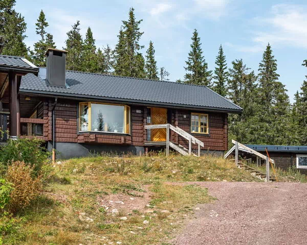 Los espacios exteriores de "Korpstigen Älgen" se definen por la belleza natural del bosque circundante y la posición elevada de la propiedad en la pendiente. La parcela de 500 metros cuadrados en estado natural proporciona amplio espacio para disfrutar del aire fresco de montaña y la tranquilidad del entorno boscoso. El camino de escalones que conduce a la entrada añade un toque característico al exterior, guiando a los huéspedes a través del terreno natural. El entorno arbolado crea un telón de fondo sereno para la relajación al aire libre.