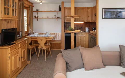La cocineta dispone de 4 placas de cocción, lavavajillas, tostadora, hervidor eléctrico y cafetera eléctrica compatible con cápsulas Nespresso, disponibles con suplemento. La calefacción es eléctrica. El salón está equipado con televisor con conexión por cable. La conexión Wi-Fi es gratuita. Para el entretenimiento culinario se proporcionan una parrilla para raclette y un juego de fondue de queso. La terraza está amueblada con mobiliario de exterior y dispone de una barbacoa.
