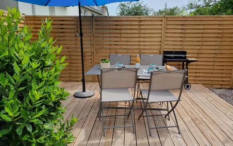 Casa unifamiliar "Les Petits Poissons", pequeña. A 2 km del centro de Dinard, a 1.2 km del mar, a 1.2 km de la playa. Privado: jardín, cuidado 120 m2 (vallado) con césped. En el inmueble: sala para guardar bicicleta. Posibilidad de aparcamiento en la calle. Tienda, tienda de comestibles 250 m, supermercado 300 m, centro comercial 1 km, restaurante, panadería 250 m, estación de tren "SNCF Saint Malo" 8.7 km, ferry "Gare Maritime du Naye" 8.9 km, playa de arena "Prieuré" 1.2 km, parque "Port Breton" 400 m, piscina cubierta 2.2 km, piscina termal "Thalasso de Dinard" 3.2 km. Puerto deportivo 1.9 km, campo de golf (18 hoyos) 7.8 km, escuela de surf 2.2 km, escuela de vela 1.9 km, tenis 350 m, minigolf 1.5 km, centro ecuestre 350 m, polideportivo 1 km. Atracciones en los alrededores: Saint Malo 9 km, Grand Aquarium de Saint Malo 6.2 km, Dinan 21.3 km, Cancale 21.4 km, Cap Fréhel et Fort La Latte 32.7 km, Mont Saint Michel 54 km. A tener en cuenta: calle principal en la proximidad.