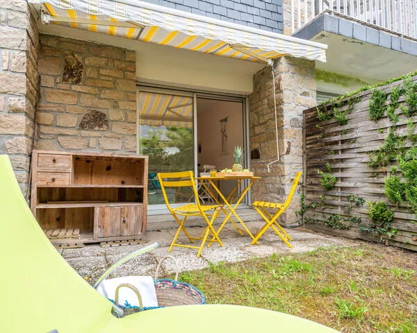 El entorno del complejo turístico proporciona un agradable espacio exterior para el descanso y disfrute de la atmósfera bretona. Los alrededores tranquilos de la propiedad crean un ambiente acogedor para la relajación al aire libre.