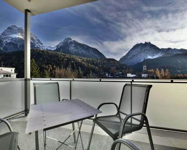 El apartamento cuenta con una terraza soleada orientada al sur, un lugar perfecto para relajarse y disfrutar del calor del sol alpino después de un día de exploración o actividad al aire libre.