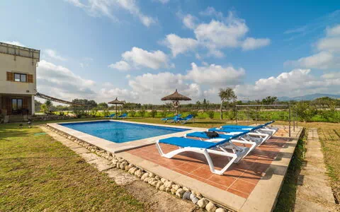 Moscari: Finca "Son Bordoi", muy amplia, bonita, rodeada de árboles, prados y campos. En las afueras de la localidad Moscari, lugar tranquilo, soleado, a 20 km del mar, en el campo. Privado: terreno en estado natural con césped, terreno con hierba, bonito jardín para relajarse, piscina rectangular (4 x 10 m, 100 - 200 cm de profundidad, Disponible por temporada: 01.Mar. - 31.Oct.). Ducha exterior, tenis de mesa, terraza-jardín, cenador, porche, muebles de jardín, barbacoa, mantenimiento de la piscina a través del propietario/jardinero. En el inmueble: acceso a internet, Wifi, calefacción central, lavadora. Aparcamiento junto a la casa en el mismo terreno. Tienda 4 km, tienda de comestibles 4 km, bar 4 km, panadería 4 km, café 4 km, internet café 4 km, bar al aire libre 4 km, parada autobús 3.5 km, playa de arena "Playa de Alcudia" 20 km, playa de piedras "Playa de Aucanada" 22 km. Zona de senderismo Fonts Ufanes 6 km. A tener en cuenta: coche recomendable. Equipamiento para bebés a demanda (incluido). Vivienda adecuada para 8 adultos. El propietario no acepta grupos de adolescentes/jóvenes. En el terreno tenencia de animales. Carga y descarga de equipaje posible en la casa de vacaciones. Aeropuerto 48 km de la casa.