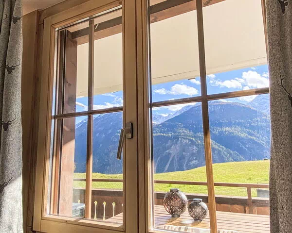La zona de estar y comedor de planta abierta está amueblada con elegancia e incluye 1 sofá cama doble de 2 x 80 cm que ofrece flexibilidad para alojar huéspedes adicionales. Desde este espacio, una salida directa conduce a un balcón de 10 m² orientado al sur, equipado con mobiliario de terraza y con vistas panorámicas muy hermosas de las montañas y el valle. El dormitorio está equipado con 1 cama francesa de 160 cm. El baño dispone de bañera y WC. El apartamento presenta suelos de parqué cálido en toda su extensión.