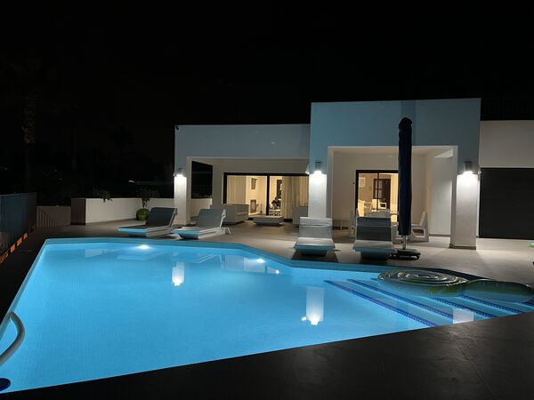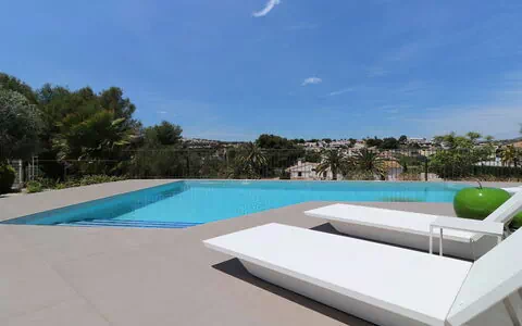 Villa "Out of the Blue", moderna, bonita. A 2.5 km del centro de Moraira, lugar soleado, a 2.5 km del mar, a 2.5 km de la playa. Privado: terreno 1'000 m2 (vallada), jardín (vallado) flores y árboles, piscina (8 x 5 m, Disponible por temporada: 01.Ene. - 31.Dic.). Ducha exterior, barbacoa. En el inmueble: calefacción central, lavadora, secadora. Aparcamiento. Supermercado 1.6 km, restaurante 1.4 km, parada autobús "Moraira" 2.3 km, estación de tren "Teulada" 5.5 km, terminal marítima "Denia", playa de arena "Playa l'Ampolla" 3 km. Puerto deportivo 3 km, puerto para yates 3 km, campo de golf (18 hoyos) 5.5 km. Atracciones en los alrededores: Aqualandia, Mundomar, Terra Mítica, Terra Natura, Benidorm Palace (Benidorm), Castillo de Guadalest. A tener en cuenta: adecuado para familias. El propietario no acepta grupos de adolescentes/jóvenes.