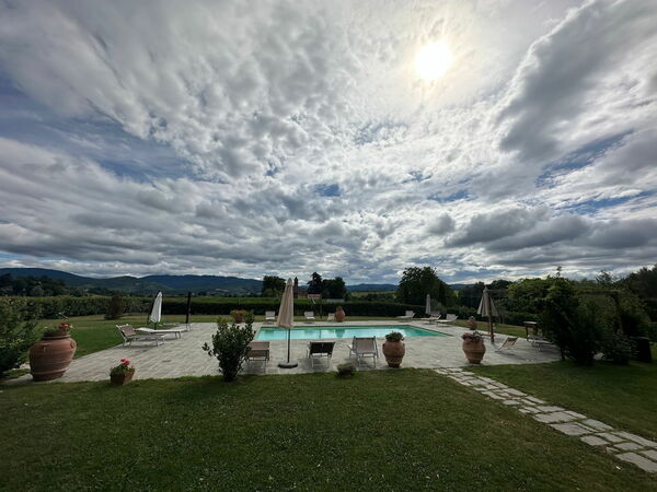 Después de llegar encontrará una estupenda propiedad limpia y acogedora con vista las colinas y las montañas ideal para unas vacaciones relajadas en Toscana. Independientemente de como pasa sus días - excursiones, shopping, museos o simplemente visitando y descubriendo el paisaje, cuando llega a casa puede relajarse con amigos y familia cerca de la piscina para un final de día perfecto en Toscana. Para su placer, afuera hay patio de recreo y parrilla. Si le gusta cocinar para su familia y amigos hay una cocina bien equipada incluso máquina de café, microondas, tostador, estufa y nevera, así como , muchas vajillas y cubiertos para hasta 17 personas. Si prefiere comer afuera 'al fresco', hay la veranda, un espacio bien equipado donde puede disfrutar el buen clima comiendo afuera.