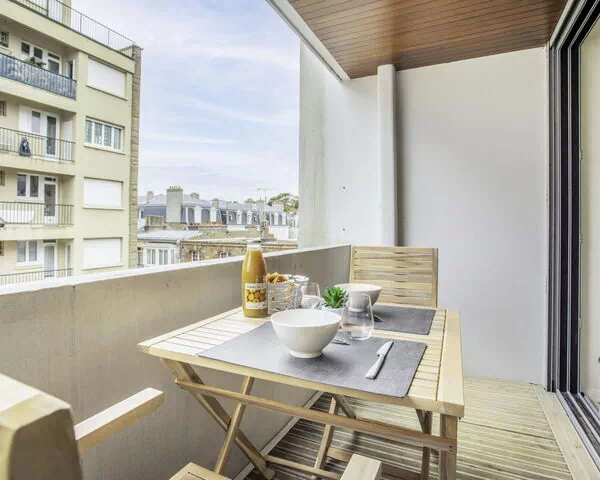 El apartamento tiene una superficie de 38 m² distribuida en 2 habitaciones y está situado en la tercera planta del edificio. Fue renovado en 2021 y tiene capacidad para 4 huéspedes, con 1 dormitorio y 1 baño. El dormitorio está equipado con una cama francesa de 160 cm de ancho y 200 cm de largo. La zona de estar y comedor es luminosa y espaciosa, amueblada con piezas modernas y cuidadosamente seleccionadas; incluye un sofá cama doble de 160 cm de ancho y 200 cm de largo que proporciona alojamiento adicional, así como una mesa de comedor que hace el espacio funcional y acogedor. Desde la zona de estar se accede directamente a un balcón privado equipado con mobiliario de exterior. El baño dispone de ducha y WC separado.