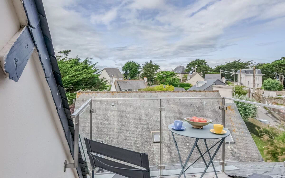"Fleurs d'Ajoncs", apartamento en dos niveles 5 estancias 61 m2. Luminoso, parcialmente abuhardillado, con mobiliario confortable y bonito: salón-comedor abuhardillado grande con CD y equipo de música. Salida a la terraza. 1 dorm. con 1 cama (90 cm, 190 cm de longitud). 1 dorm. con 1 cama de matrimonio (1 x 160 cm, 200 cm de longitud). Cocina abierta (horno, lavavajillas, 3 Placas de inducción, tostadora, hervidor de agua eléctrico, microondas, cafetera eléctrica, Cápsulas de café (Nespresso) extra). Ducha/WC. En planta inferior: 1 dorm. con 2 camas (90 cm, 190 cm de longitud). 1 dorm. con 1 cama de matrimonio (1 x 140 cm, 190 cm de longitud). Salida al balcón. Ducha/WC. Calefacción eléctrica, calentador (200 litros). Vista muy bonita al mar. El alojamiento dispone de: lavadora, secadora. Internet (Wifi, gratis). A tener en cuenta: apartamento para no fumadores. Detector de humo. 35288803076D4