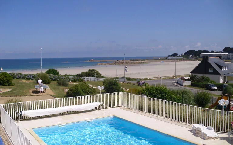 Situación: en el centro de TREVOU TREGUIGNEC, en el barrio de bord de la plage de Trestel, lugar tranquilo en el campo, en una pendiente, a la orilla del mar, en la playa. Vista desde la vivienda al mar.