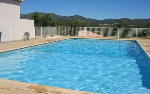 La villa dispone de una piscina compartida de forma angular que mide 8 x 15 metros, con una profundidad que oscila entre 105 y 225 cm. La piscina está disponible del 1 de mayo al 30 de septiembre, con acceso diario entre las 07:00 y las 22:00. El área de la piscina está vallada y se encuentra rodeada de un entorno que refleja el encanto y la elegancia característica de esta región del sur de Francia.