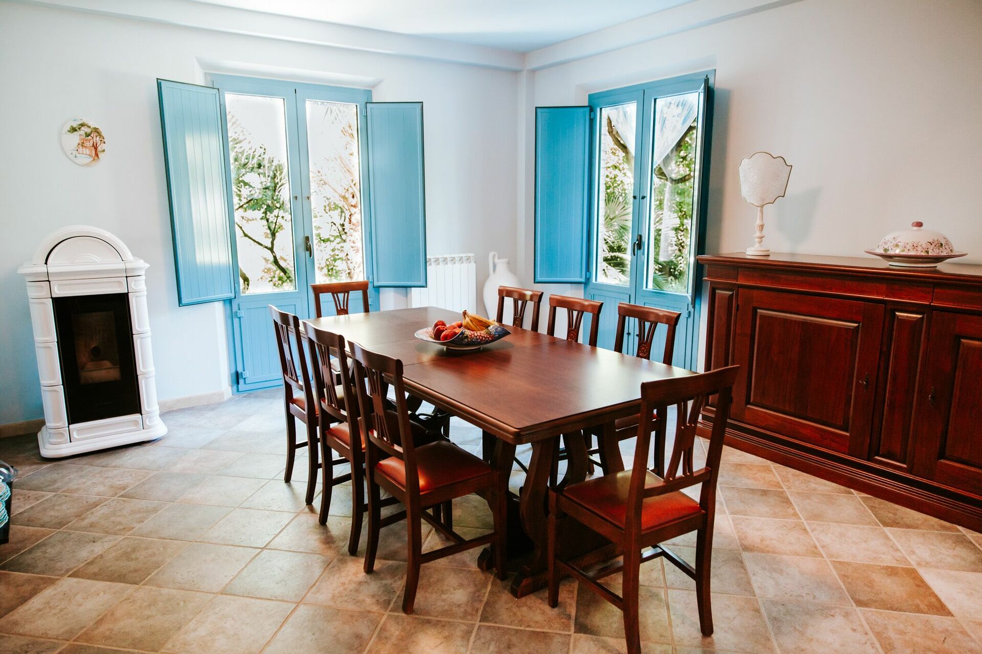 Cocina: cocina bien equipada, mesa de comedor, lavavajillas, frigorífico, congelador, microondas, cocina de gas, estufa de leña, horno, tostadora, máquina de café italiana, máquina de café americana, WIFI internet, acceso al jardín.