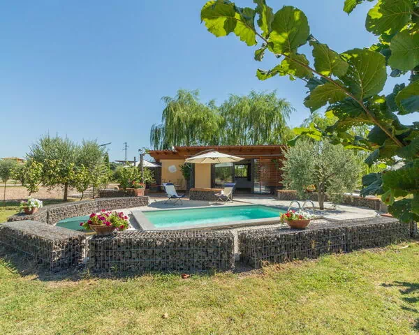 Ubicada en el pintoresco paisaje de Sutri, en el corazón de Italia, la villa "Il Vitigno" es una casa de vacaciones moderna y confortable que ofrece un espacio privado generoso. La propiedad se emplaza dentro de una finca más amplia que cuenta con un parque vallado compartido de 3 hectáreas, proporcionando una sensación de espacio y belleza natural. La casa dispone de una piscina privada de 5 x 3 metros con profundidad de 120 cm, equipada con sistema de limpieza por electrólisis salina y disponible del 1 de junio al 30 de septiembre. El acceso a la propiedad se realiza a través de puertas eléctricas que garantizan seguridad y privacidad.