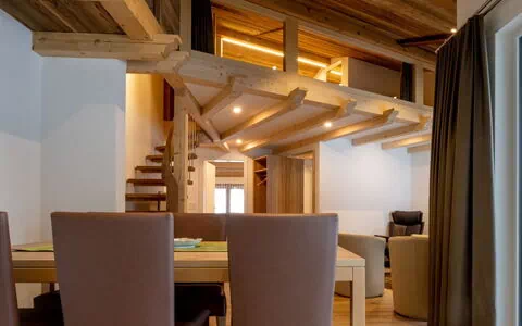 Apartmenthaus Alpenrose se encuentra en la parte norte de la localidad de Saas-Almagell, en Suiza, y ofrece alojamiento en régimen de autoservicio en un entorno alpino tranquilo. El apartamento de 4,5 habitaciones ocupa 100 m² en la 2ª planta, lado este del edificio, y está diseñado para alojar a 4 adultos y 3 niños. Dispone de 2 dormitorios dobles, cada uno con su propio aseo y ducha, así como una amplia habitación infantil en la galería con una altura máxima de 140 cm. La cocina semiabierta está completamente equipada con horno, placa de inducción, lavavajillas, frigorífico grande, cafetera, tostador y juego de fondue. El salón-comedor cuenta con televisión por satélite.