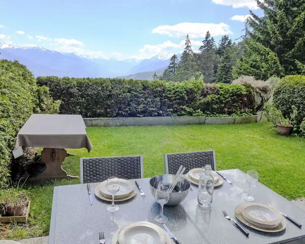 El patio ofrece un espacio exterior agradable donde disfrutar de las vistas alpinas del paisaje de Crans. La orientación sur-oeste asegura que los espacios exteriores reciban abundante luz solar durante gran parte del día.