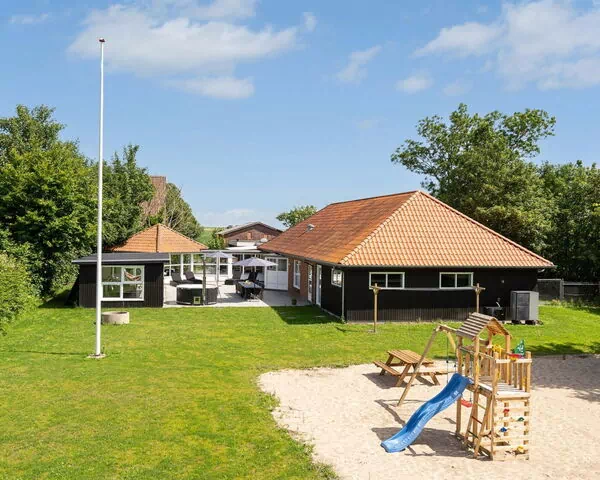 La propiedad dispone de una terraza de 200 m2 que ofrece amplio espacio para tomar el sol, comer al aire libre y disfrutar de reuniones en el aire fresco danés. Un área de barbecue permite disfrutar de comidas al aire libre durante las tardes de verano. El jardín vallado, dentro de la parcela de 4.500 m2, proporciona un entorno seguro y sereno donde los huéspedes pueden pasear libremente y relajarse en completa privacidad. Hay un parque infantil dedicado con tobogán y columpio para entretenimiento de los niños.
